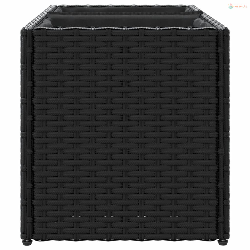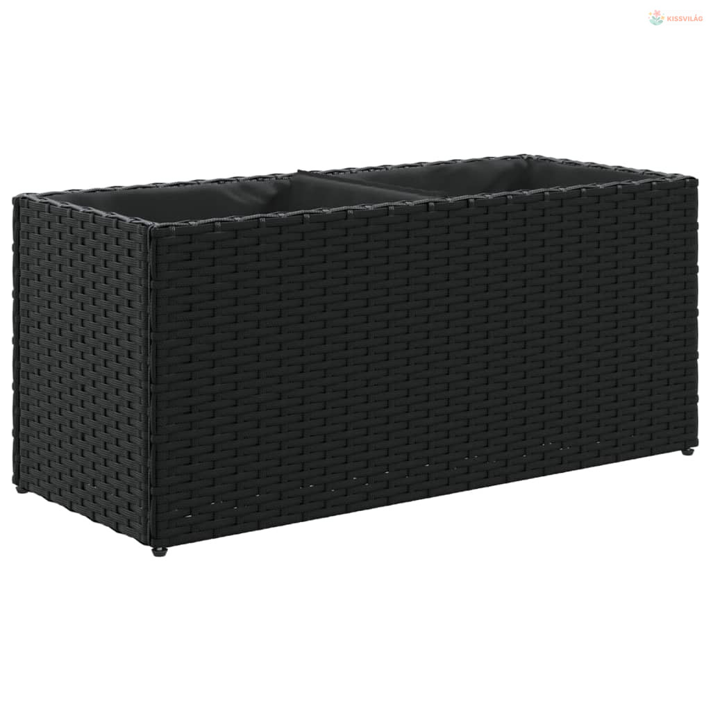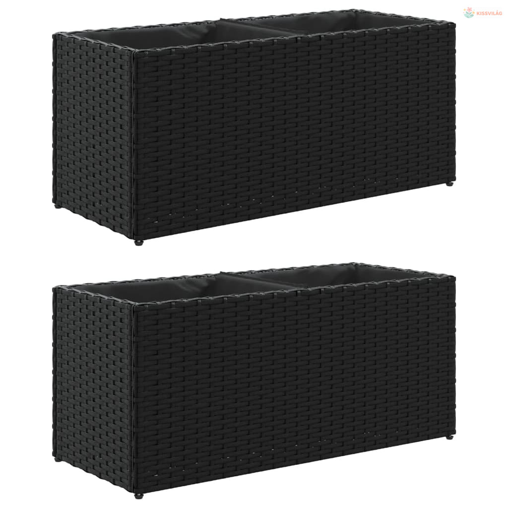 2 db fekete polyrattan kerti ültetőláda 2 cseréppel 72x30x32 cm