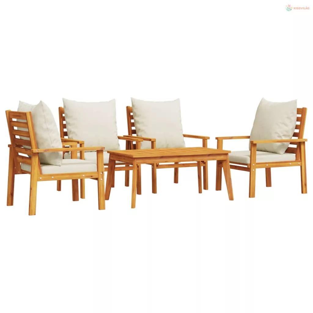 5 részes tömör akácfa kerti ülőgarnitúra párnákkal