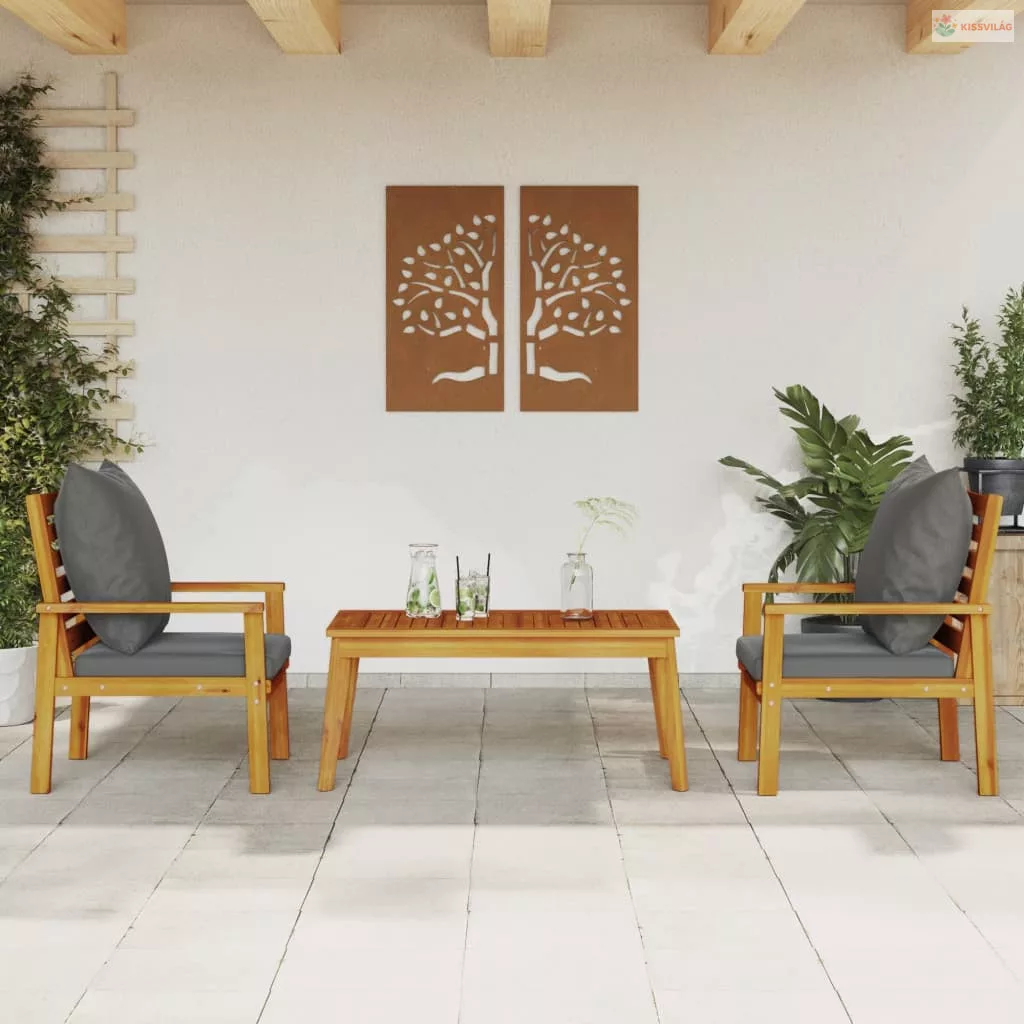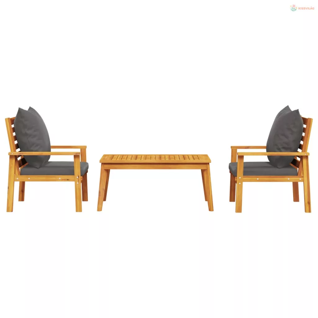 3 részes tömör akácfa kerti ülőgarnitúra párnákkal