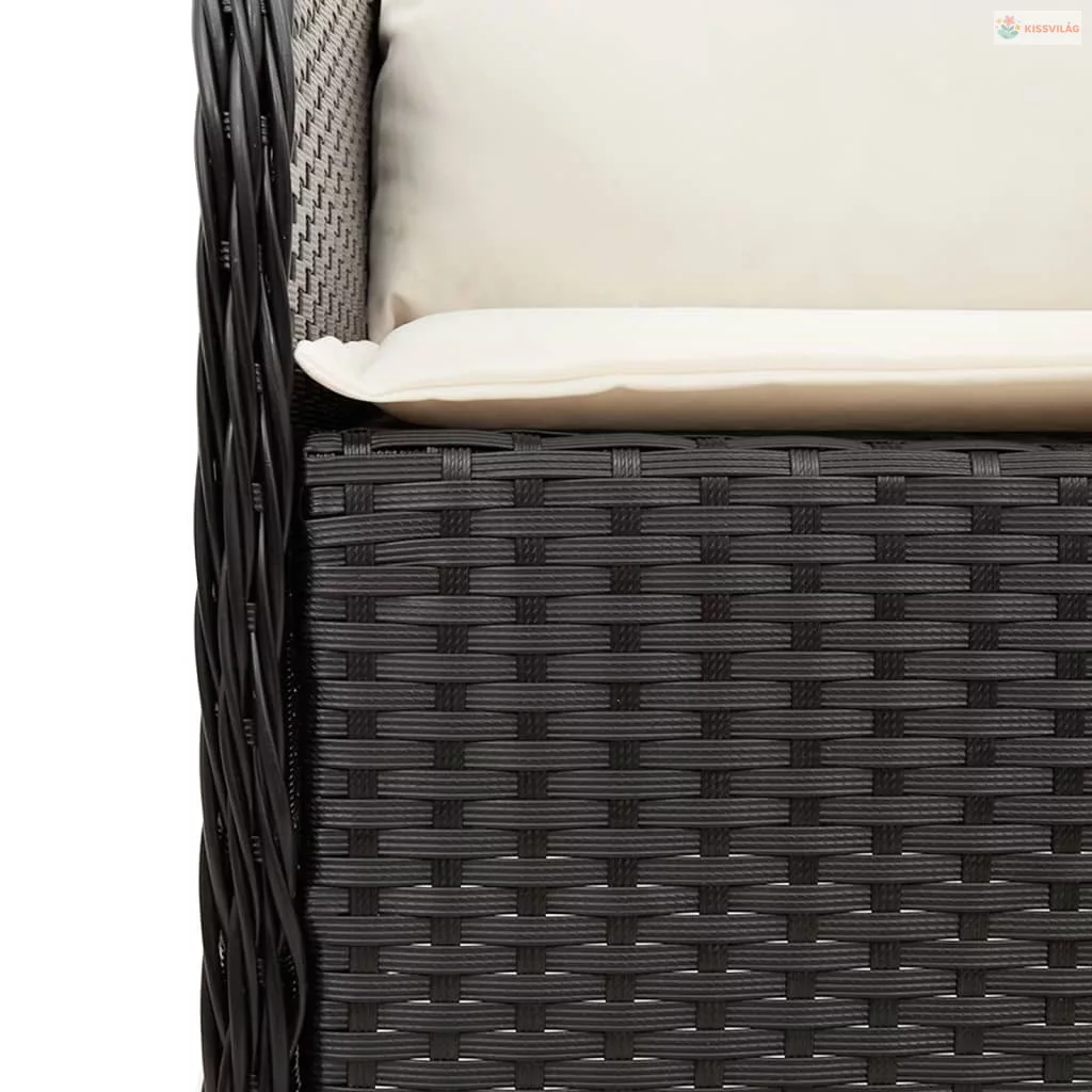 3 részes fekete polyrattan kerti étkezőgarnitúra párnákkal