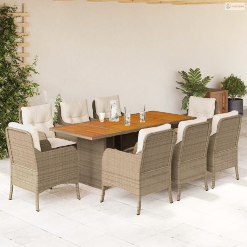 9 részes bézs polyrattan kerti étkezőgarnitúra párnákkal
