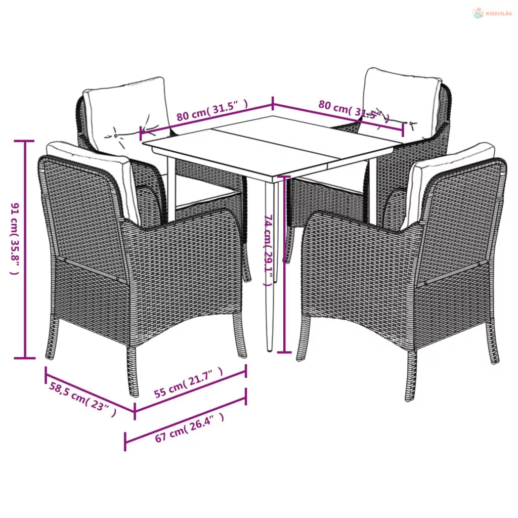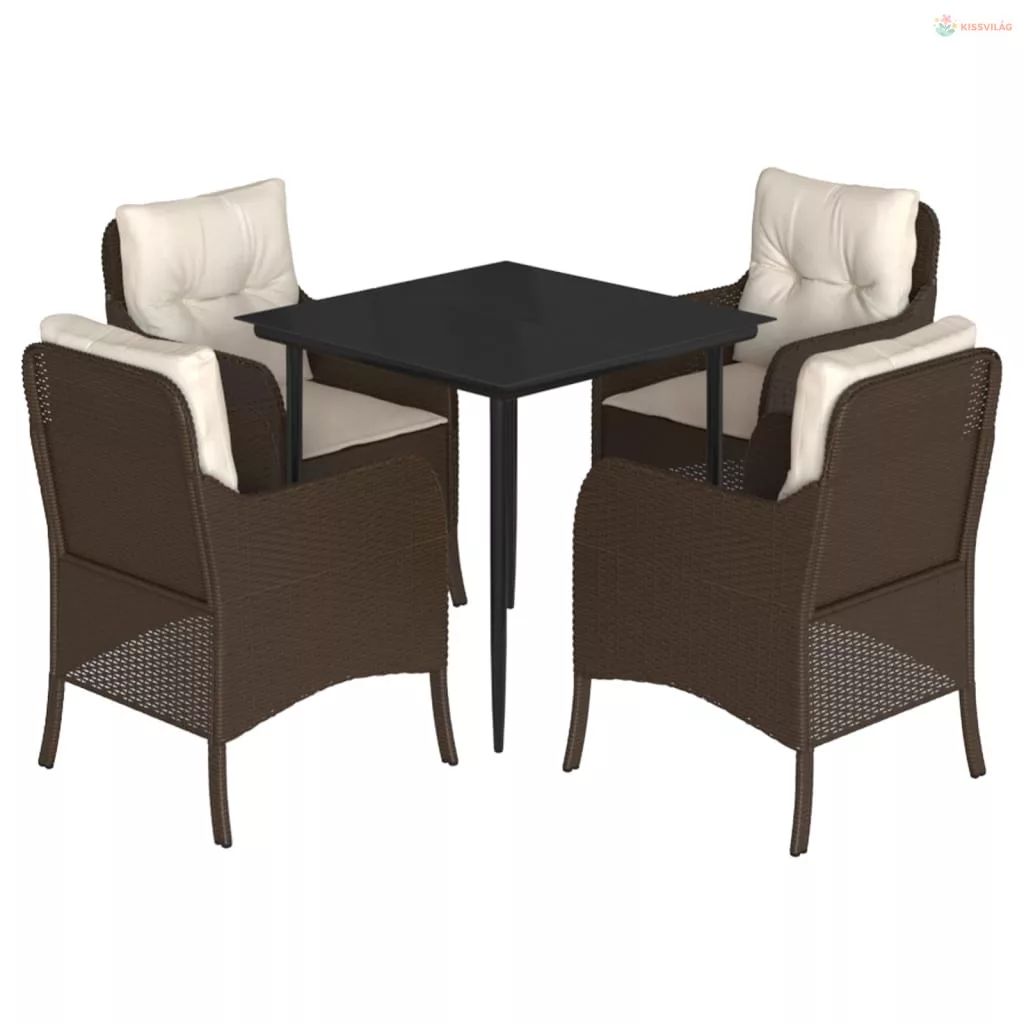 5 részes barna polyrattan kerti étkezőgarnitúra párnákkal