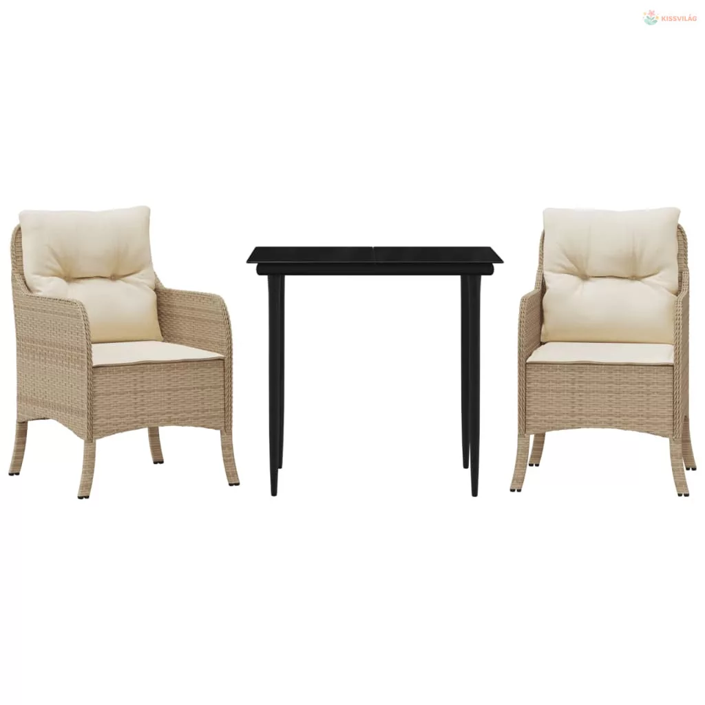 3 részes bézs polyrattan kerti étkezőgarnitúra párnákkal