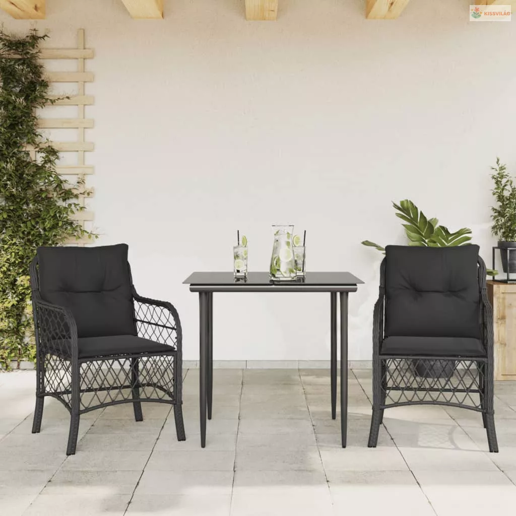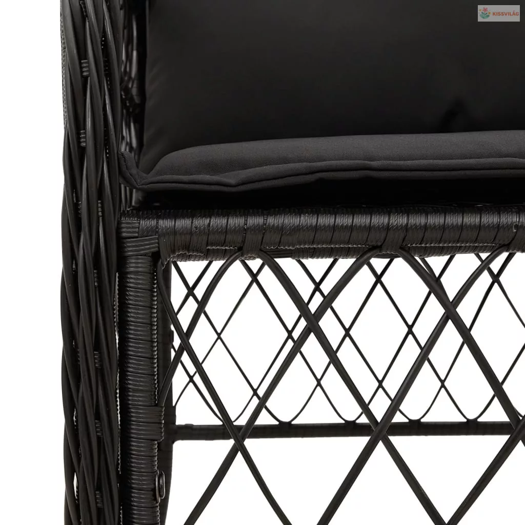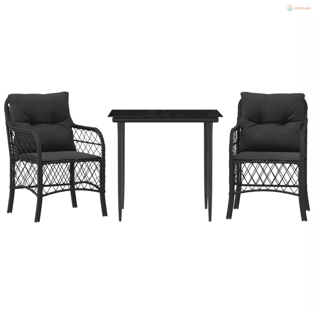 3 részes fekete polyrattan bisztrógarnitúra párnával