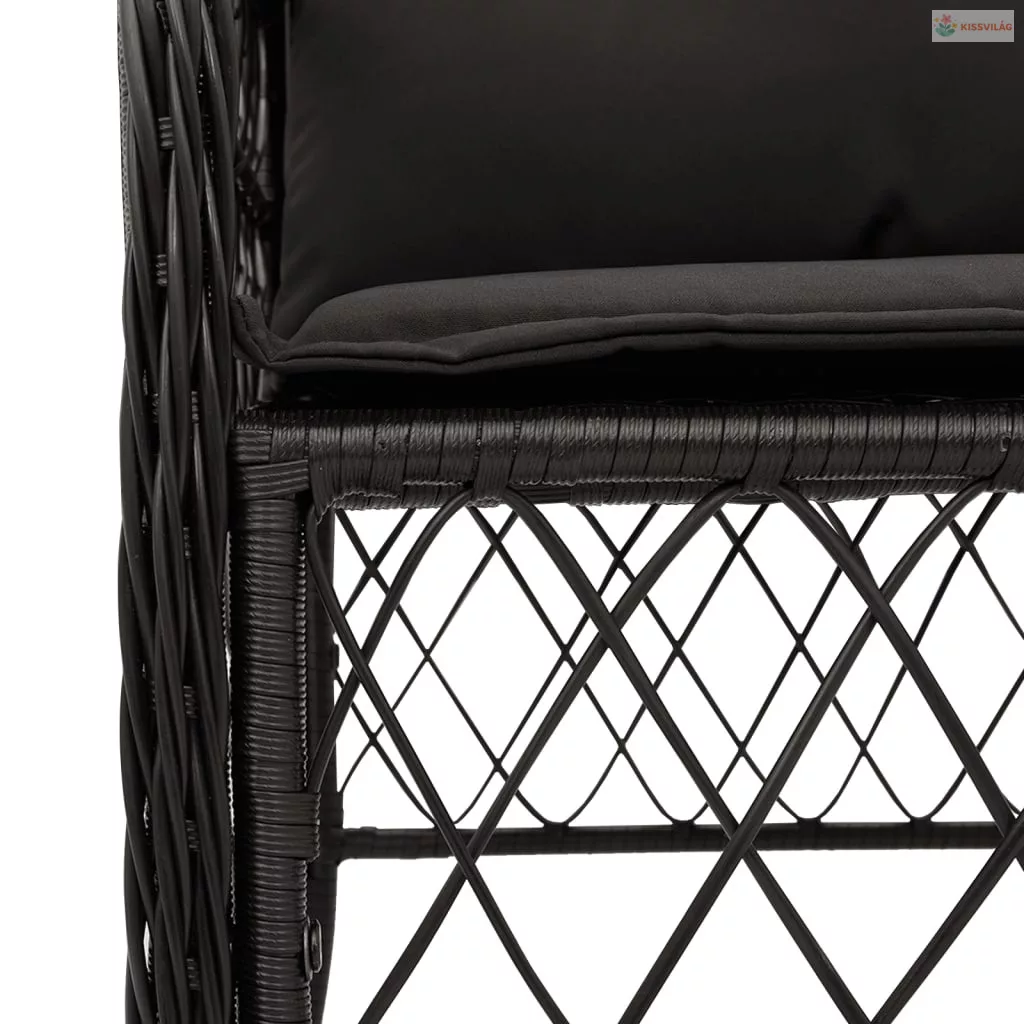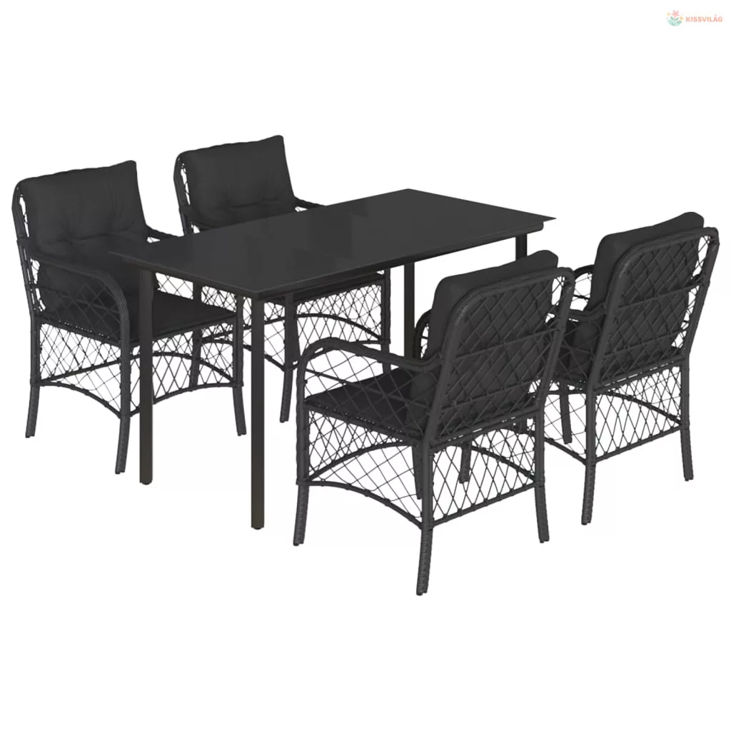5 részes fekete polyrattan kerti étkezőgarnitúra párnákkal