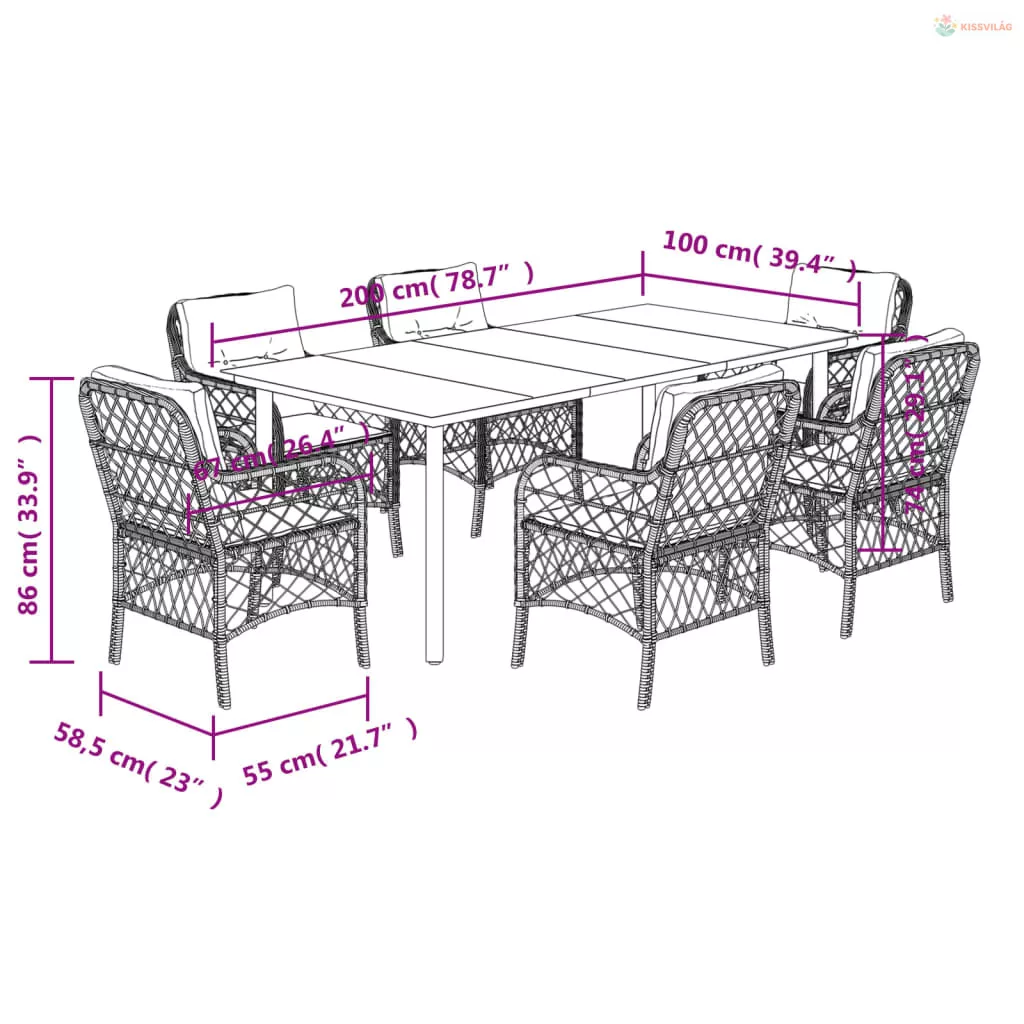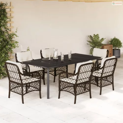 7 részes barna polyrattan kerti étkezőgarnitúra párnával