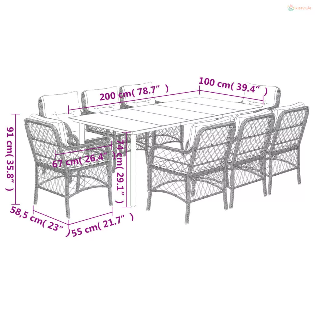 9 részes barna polyrattan kerti étkezőgarnitúra párnákkal