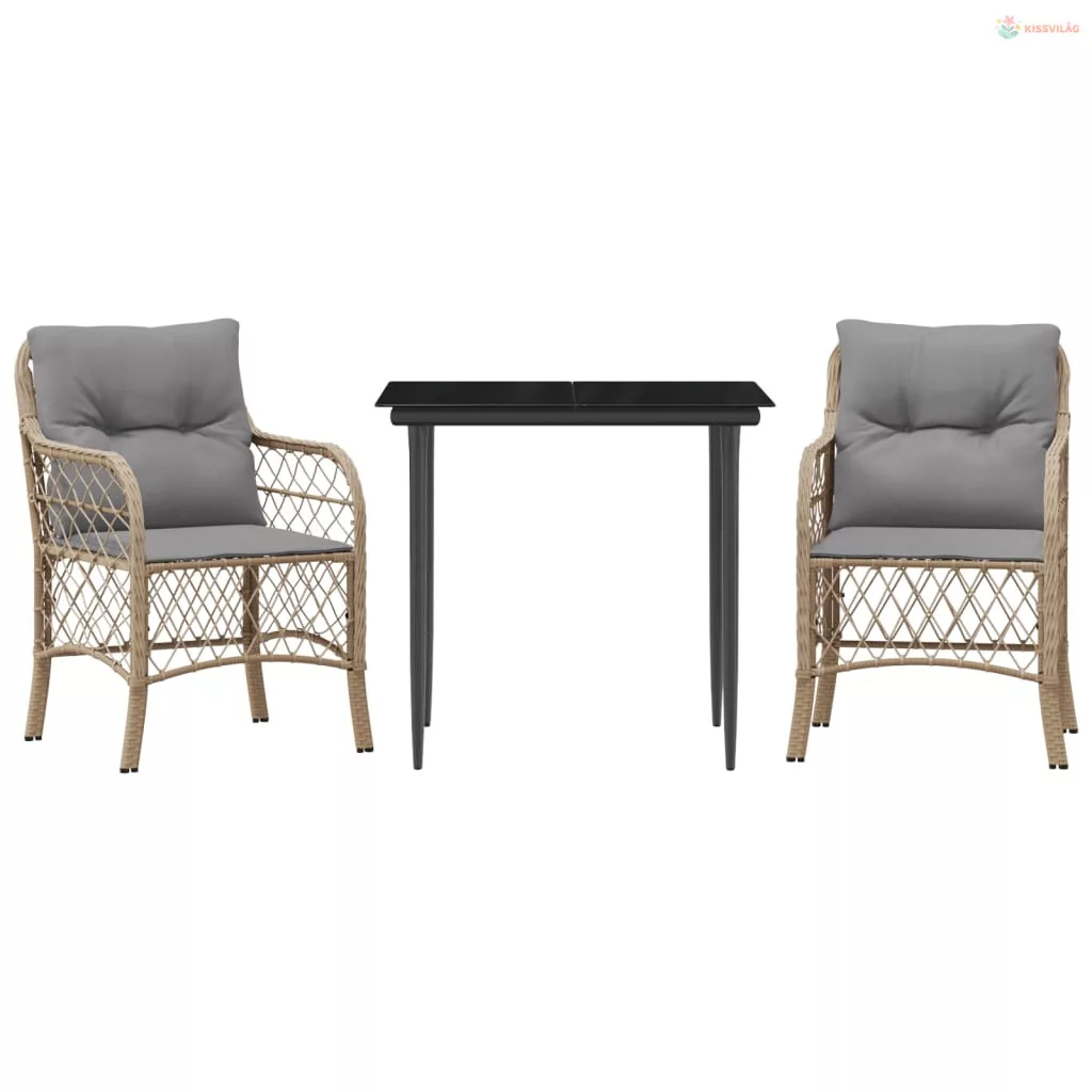 3 részes vegyes bézs polyrattan bisztrógarnitúra párnákkal