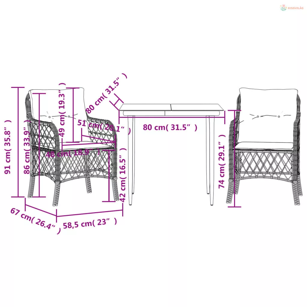 • Mérete: 58,5 x 67 x 86 cm (Szé x Mé x Ma)