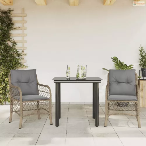 3 részes vegyes bézs polyrattan bisztrógarnitúra párnákkal