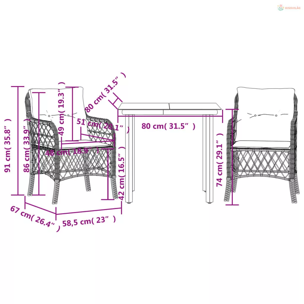 • Mérete: 58,5 x 67 x 86 cm (Szé x Mé x Ma)