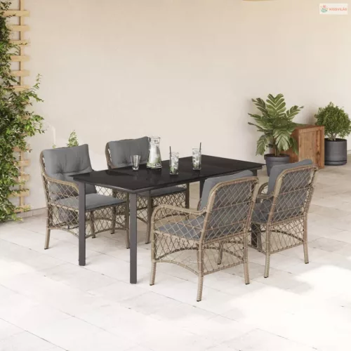 5 részes vegyes bézs polyrattan kerti étkezőgarnitúra párnákkal