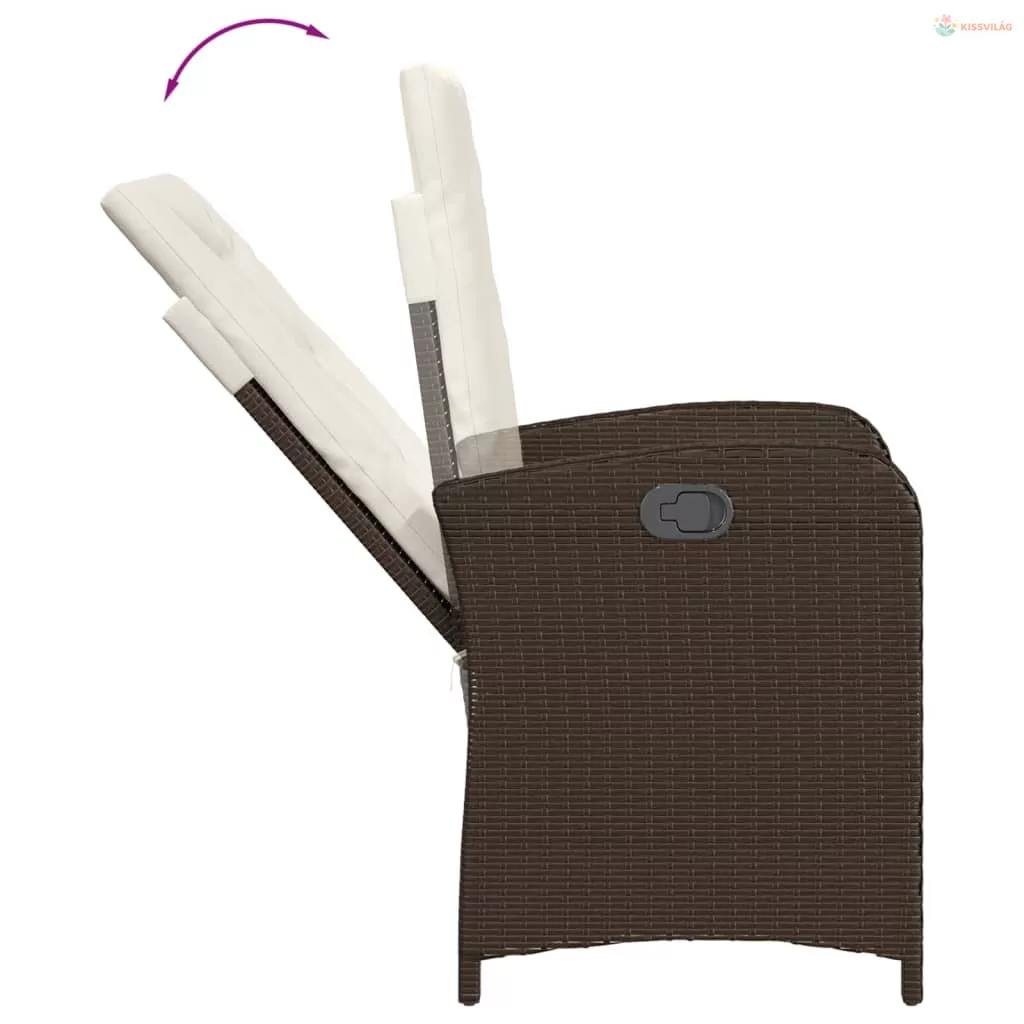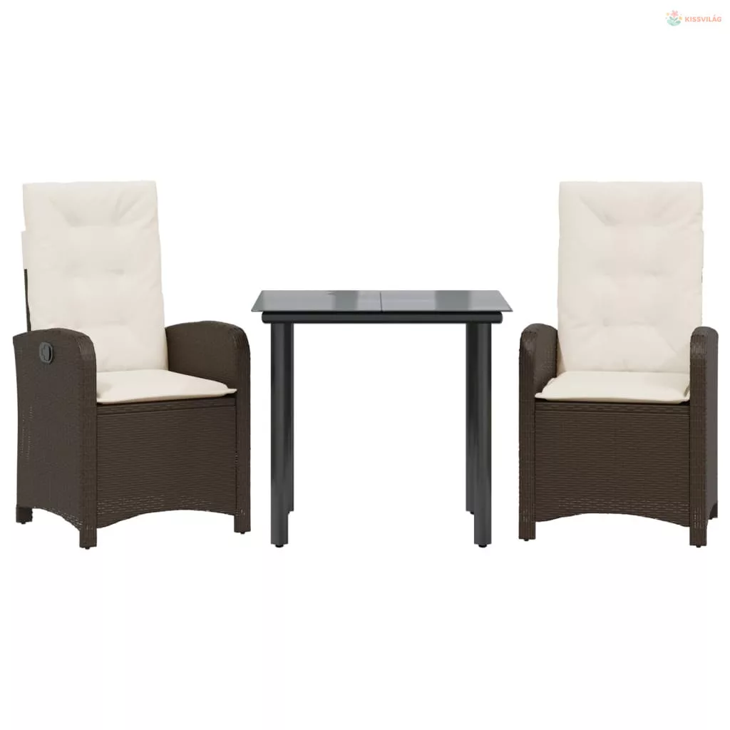 3 részes barna polyrattan kerti étkezőgarnitúra párnával