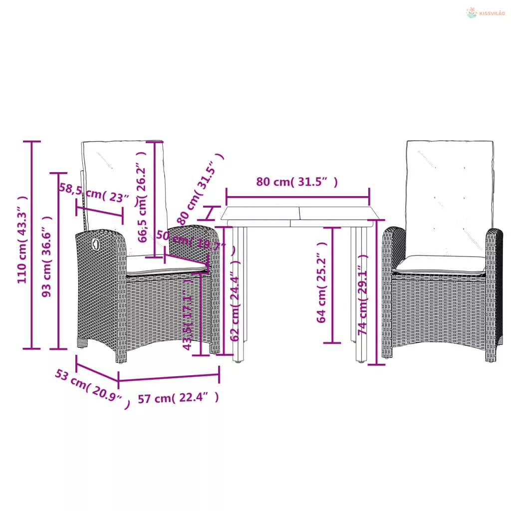 • Ülőmérete: 57 x 58,5 x 93 cm (Szé x Mé x Ma)