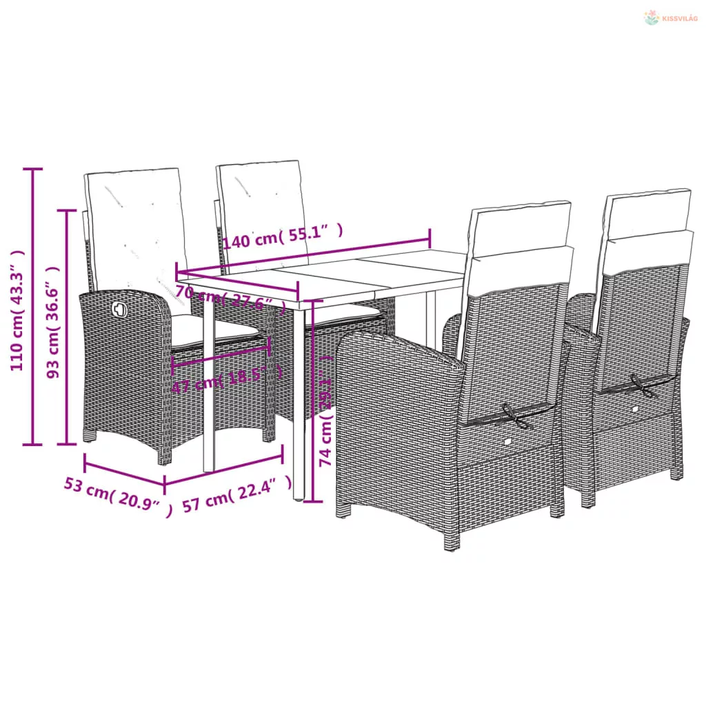 5 részes barna polyrattan kerti étkezőgarnitúra párnákkal