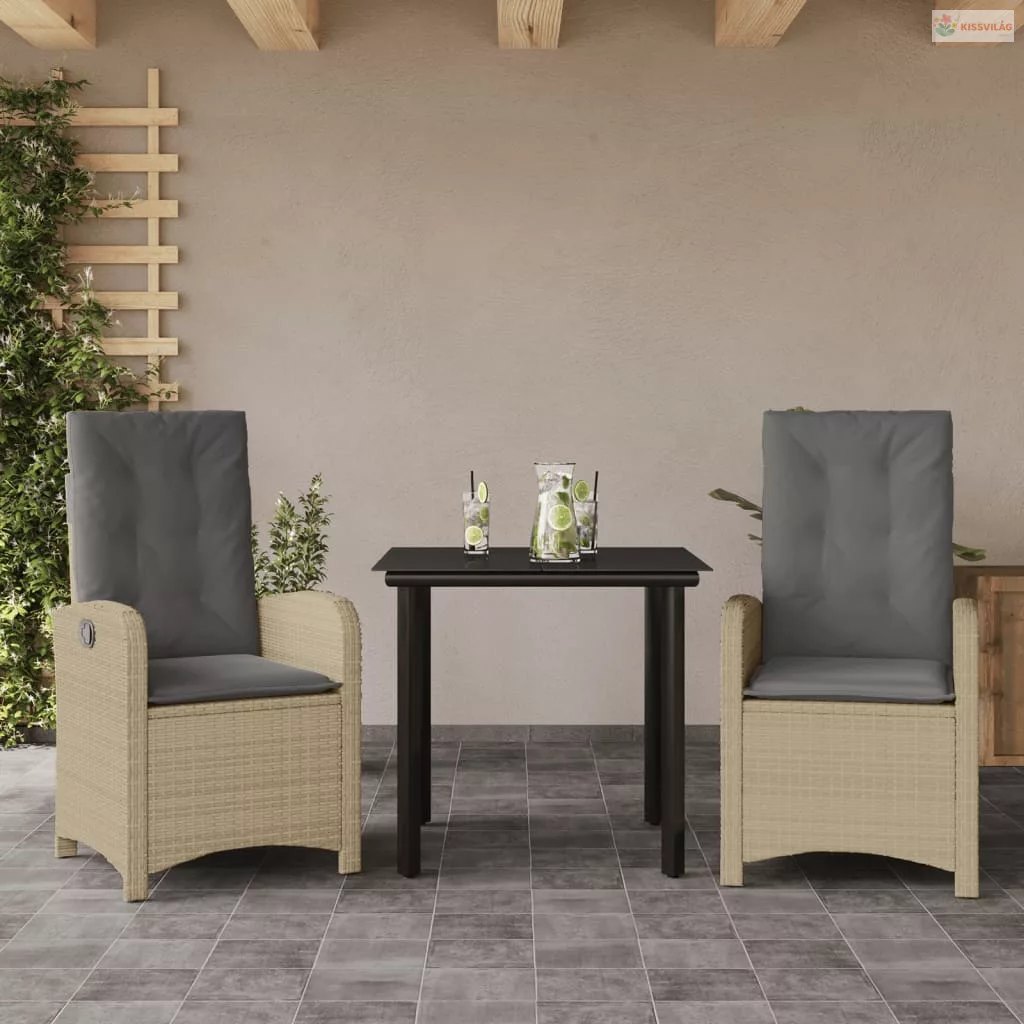 3 részes vegyes bézs polyrattan kerti étkezőgarnitúra párnákkal