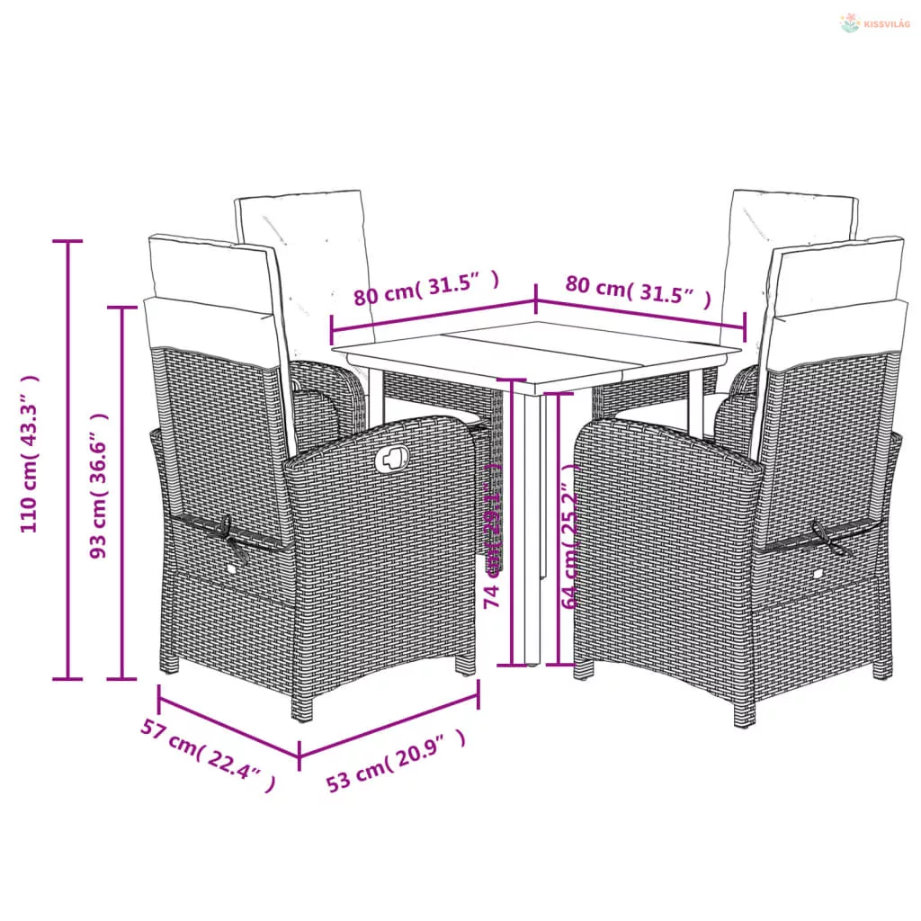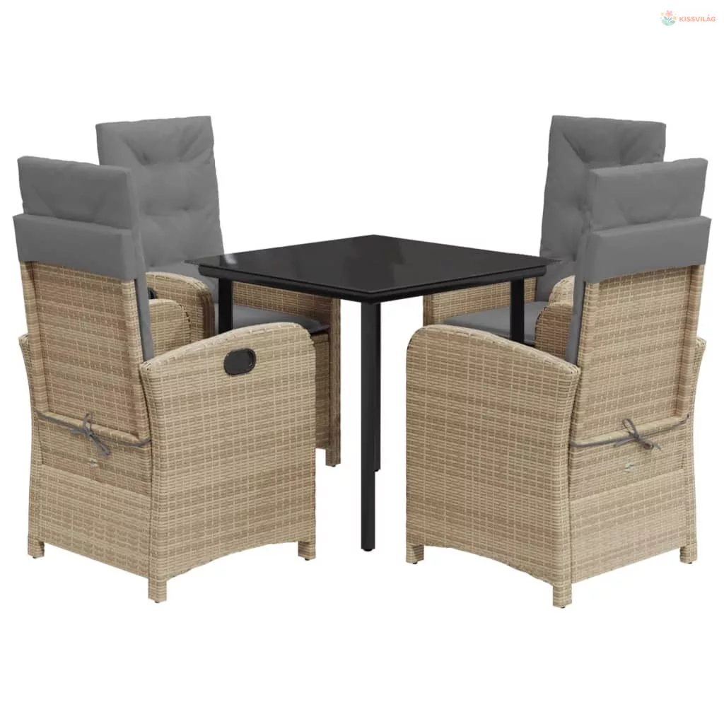5 részes vegyes bézs polyrattan kerti étkezőgarnitúra párnákkal