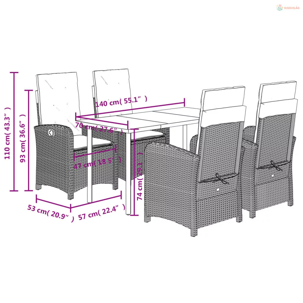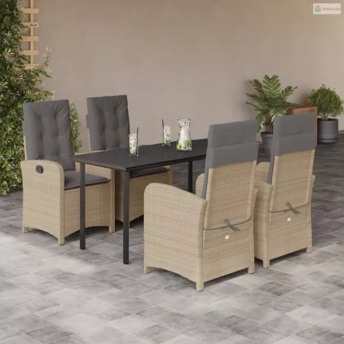 5 részes vegyes bézs polyrattan kerti étkezőgarnitúra párnákkal
