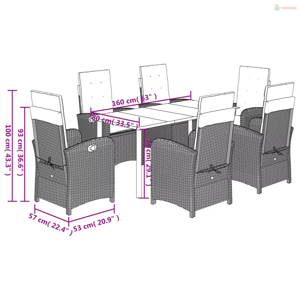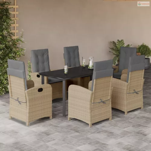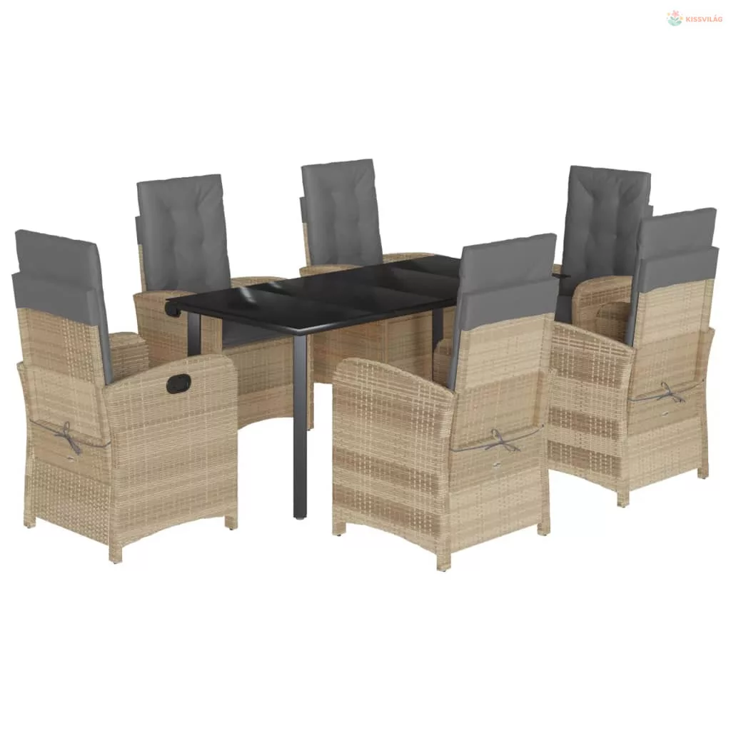 7 részes vegyes bézs polyrattan kerti étkezőgarnitúra párnákkal