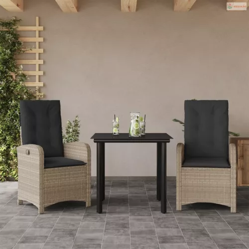 3 részes világosszürke polyrattan kerti étkezőgarnitúra párnával