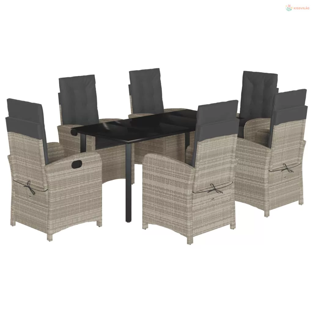 7 részes világosszürke polyrattan kerti étkezőszett párnával