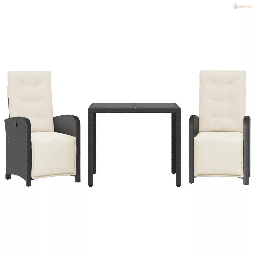 3 részes fekete polyrattan bisztrógarnitúra párnával