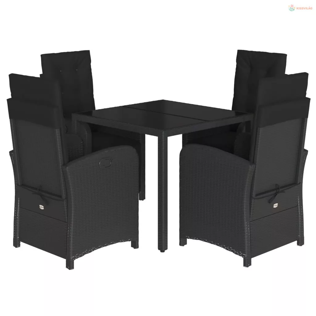 5 részes fekete polyrattan kerti étkezőgarnitúra párnákkal