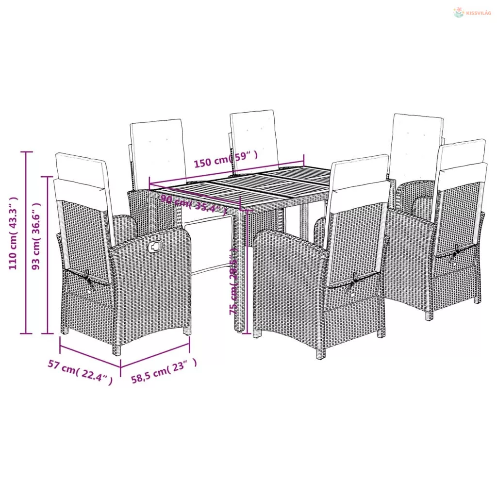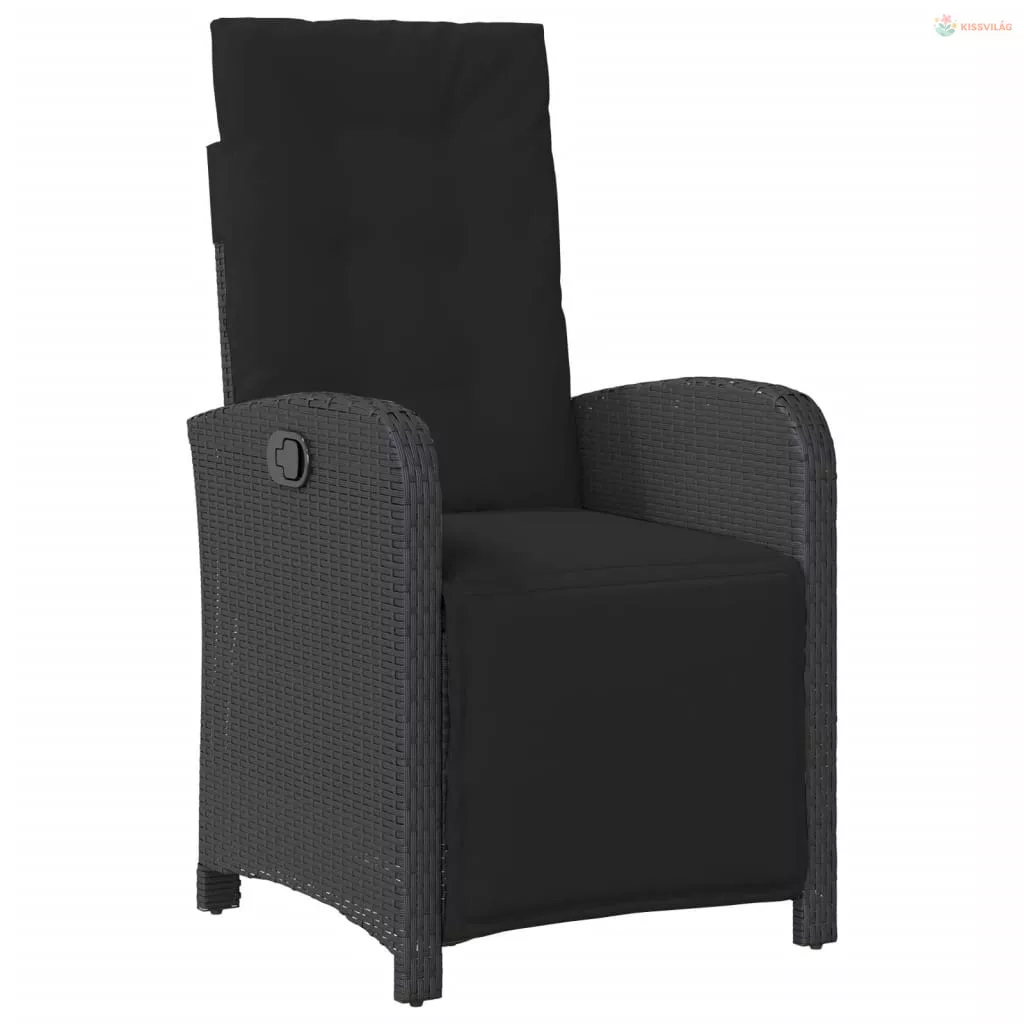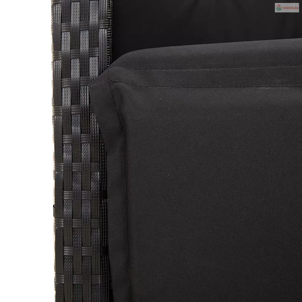 7 részes fekete polyrattan kerti étkezőgarnitúra párnával
