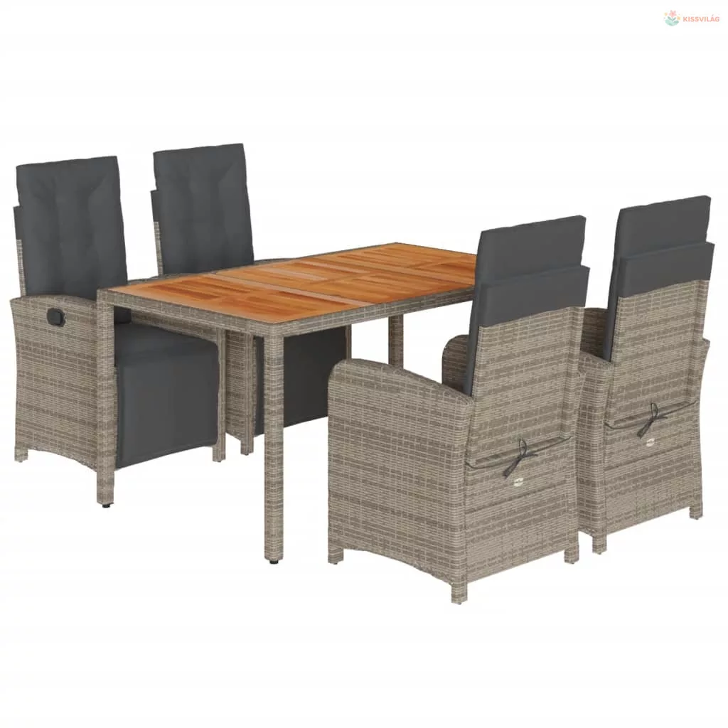 5 részes szürke polyrattan kerti étkezőgarnitúra párnával