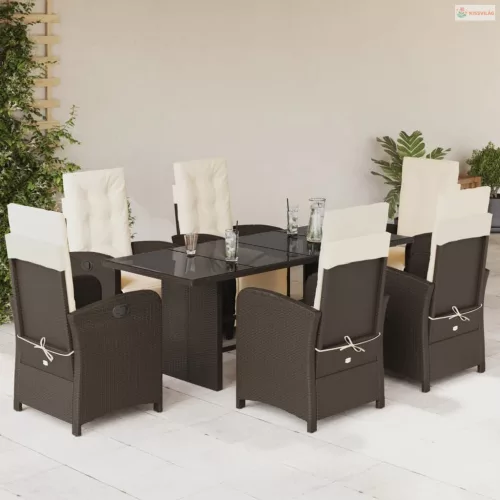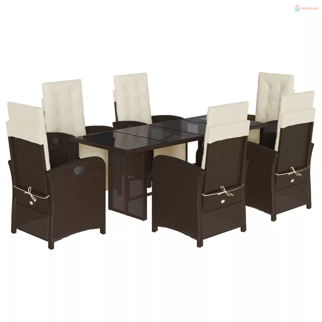 7 részes barna polyrattan kerti étkezőgarnitúra párnával