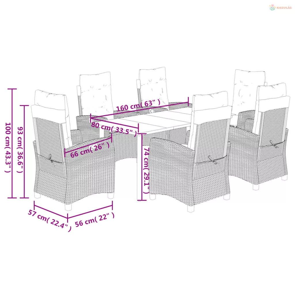 • Ülőmérete: 57 x 66 x 93 cm (Szé x Mé x Ma)