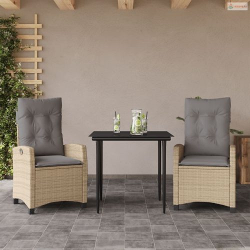 3 részes vegyes bézs polyrattan kerti étkezőgarnitúra párnákkal