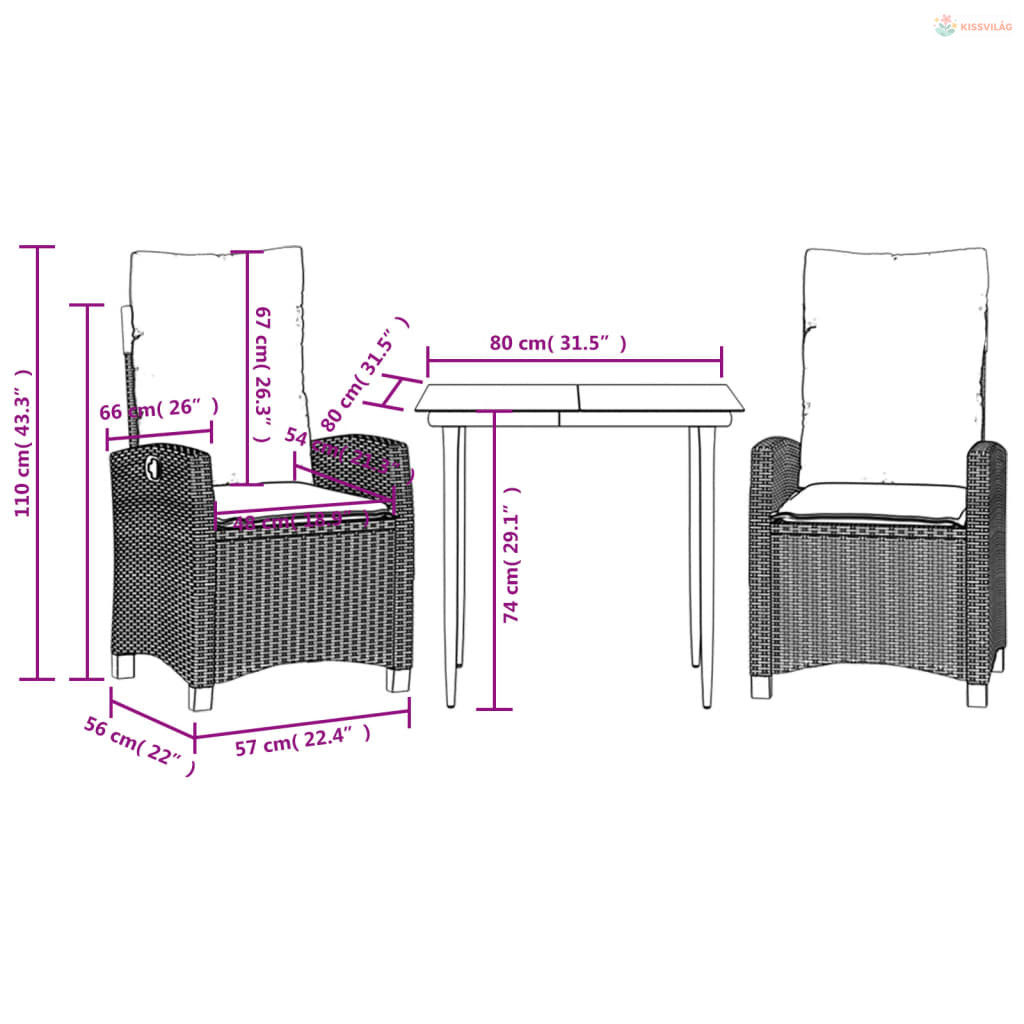 • Ülőmérete: 57 x 66 x 93 cm (Szé x Mé x Ma)