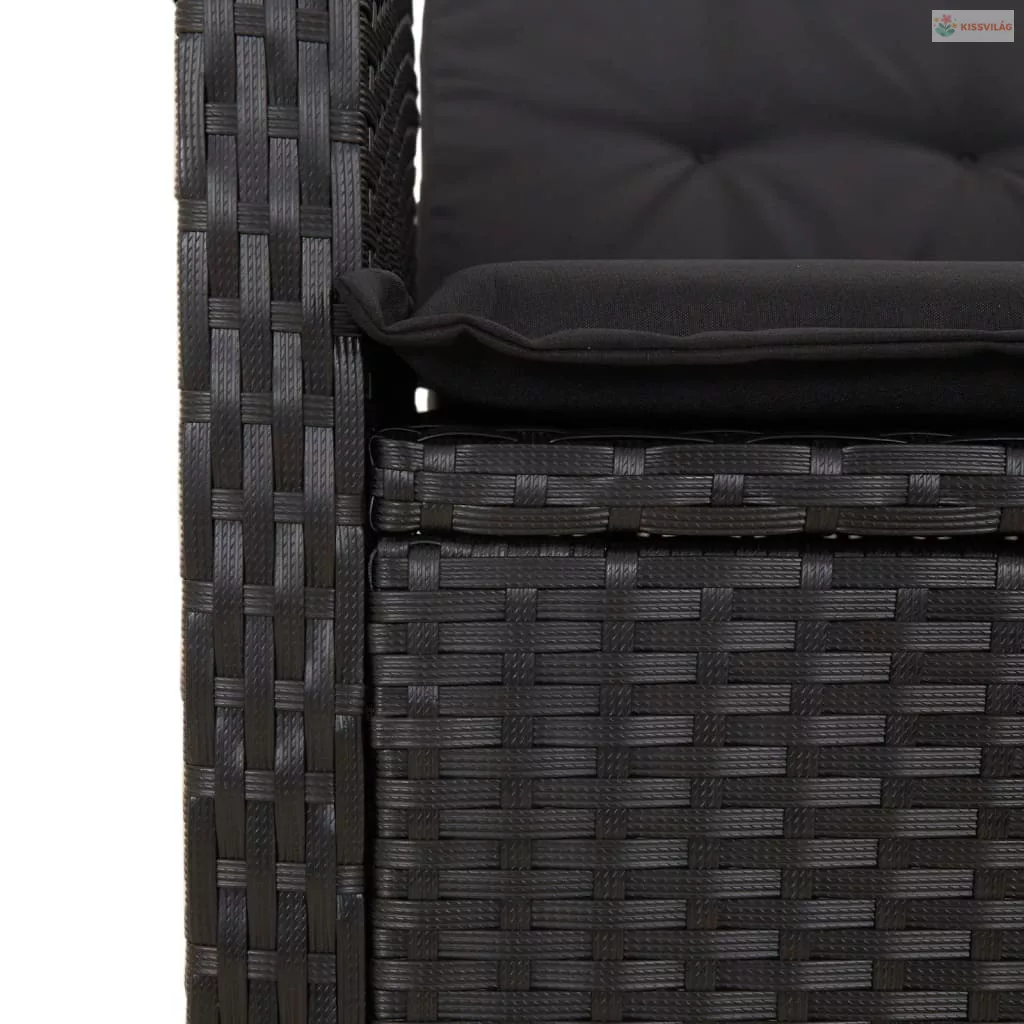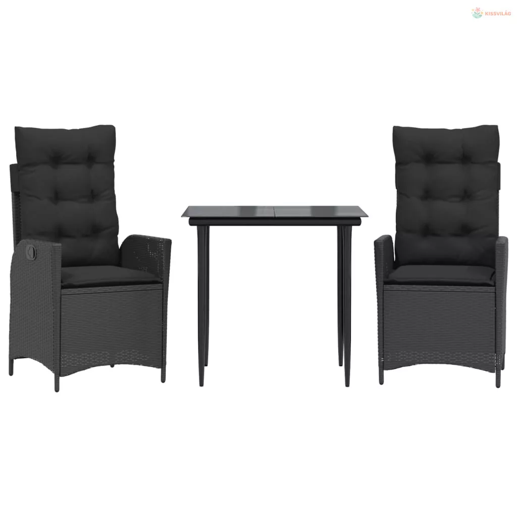 3 részes fekete polyrattan kerti étkezőgarnitúra párnákkal