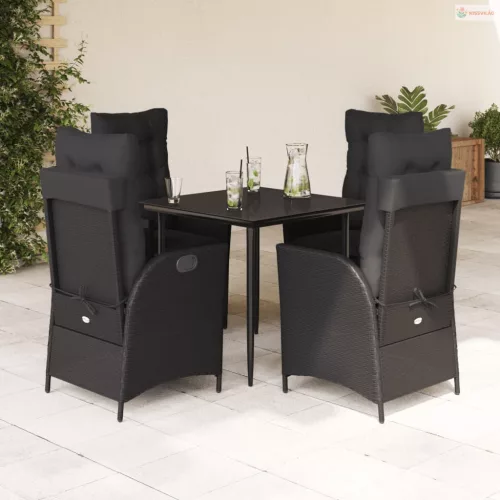 5 részes fekete polyrattan kerti étkezőgarnitúra párnákkal
