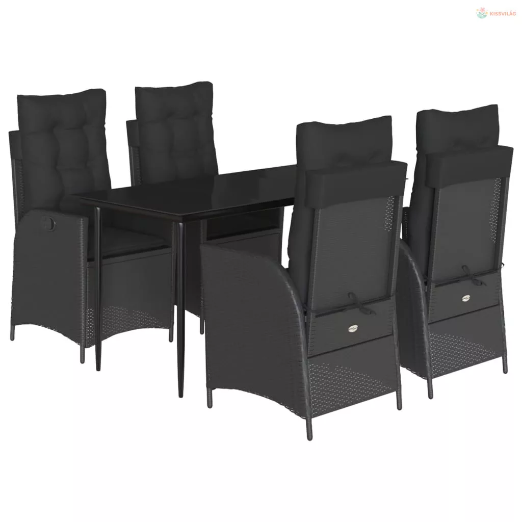 5 részes fekete polyrattan kerti étkezőgarnitúra párnákkal
