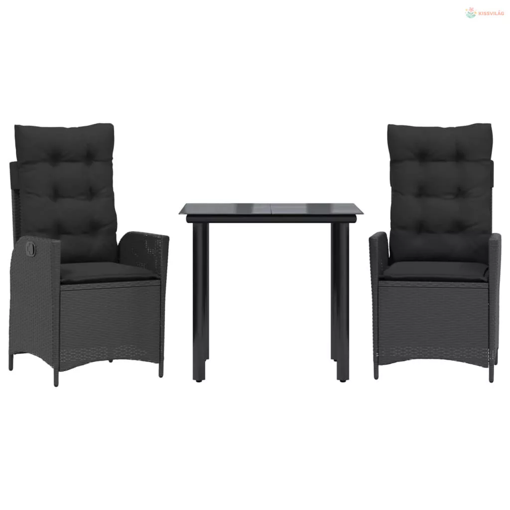 3 részes fekete polyrattan kerti étkezőgarnitúra párnákkal