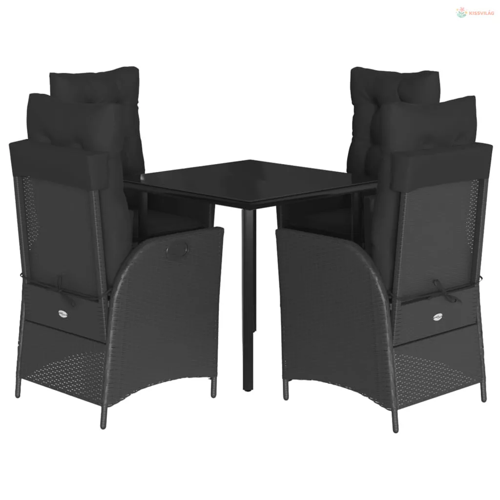 5 részes fekete polyrattan kerti étkezőgarnitúra párnákkal