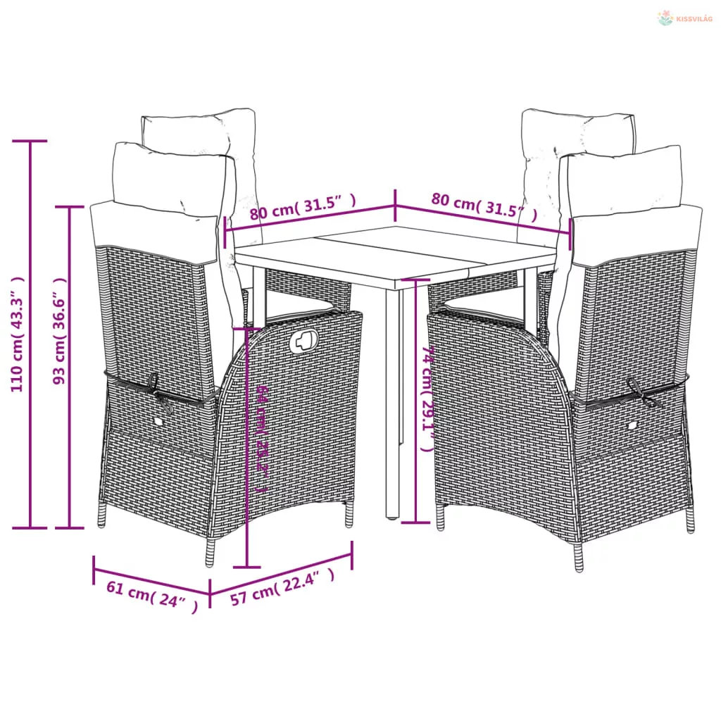• Anyaga: polyrattan, porszórt acél