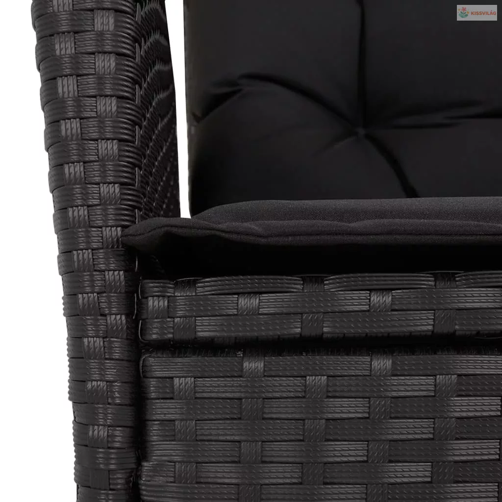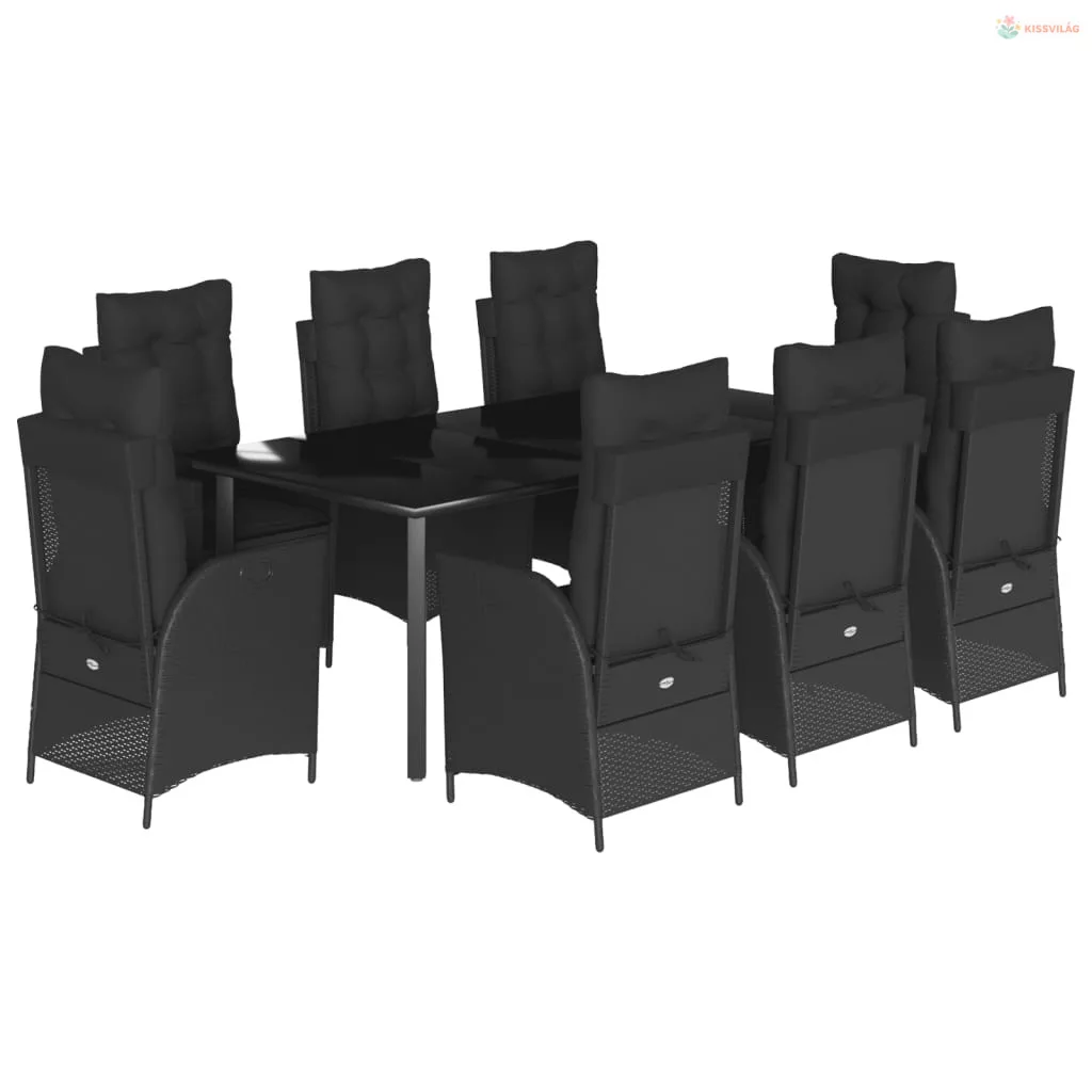 9 részes fekete polyrattan kerti étkezőgarnitúra párnákkal