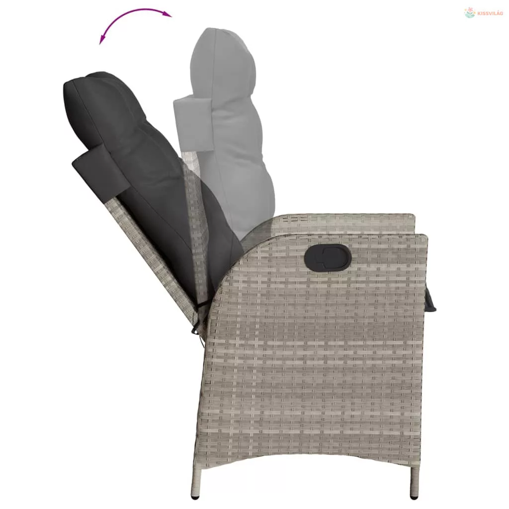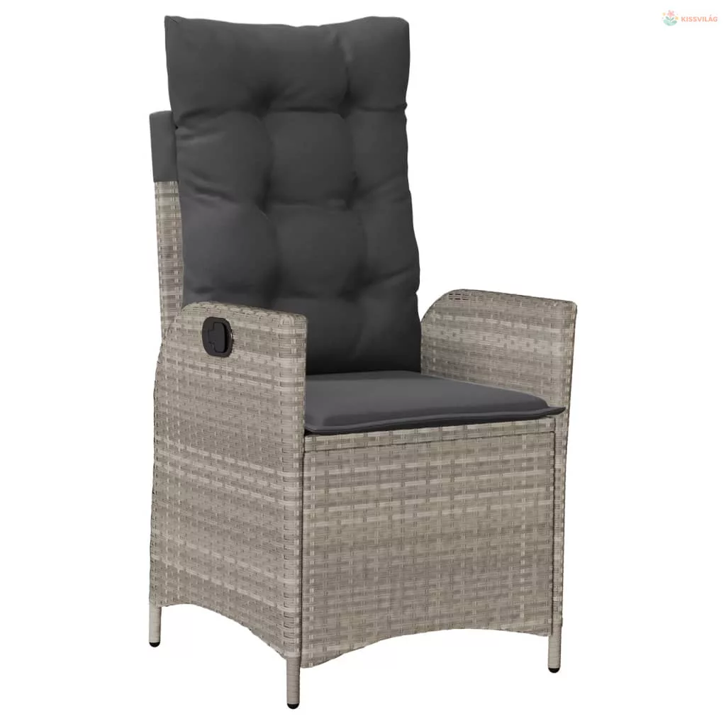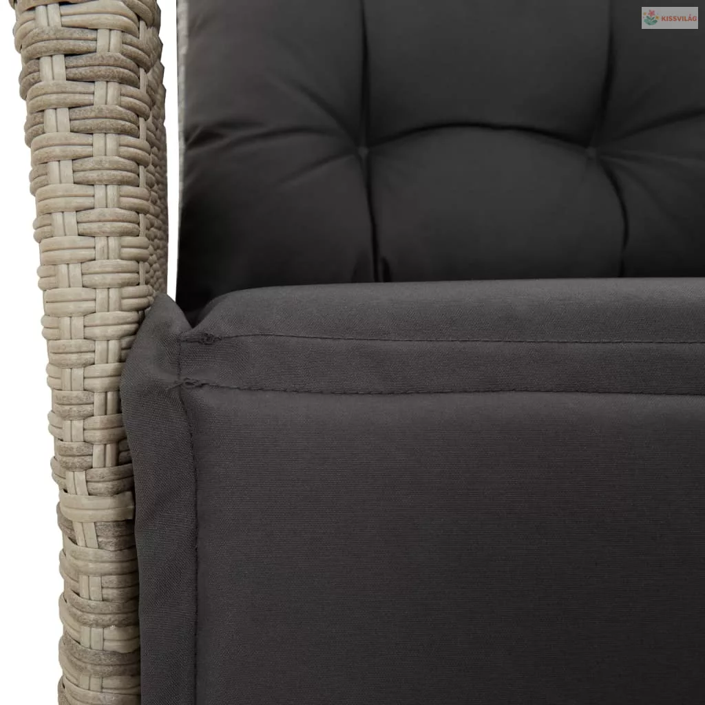 7 részes világosszürke polyrattan kerti étkezőszett párnával