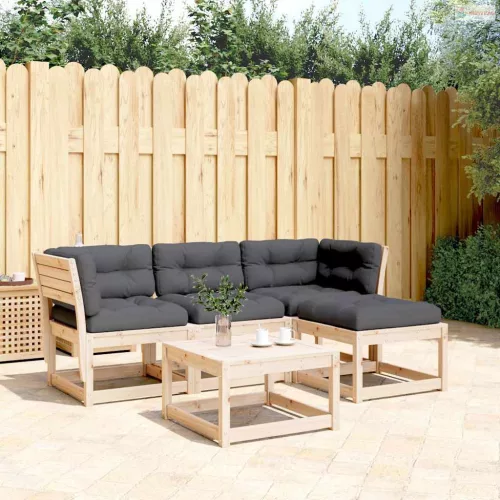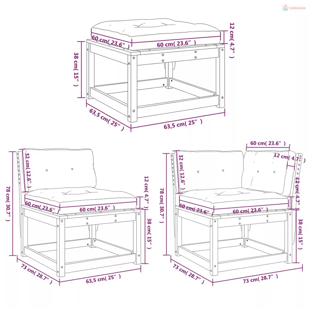 4 részes tömör fenyőfa kerti ülőgarnitúra párnákkal