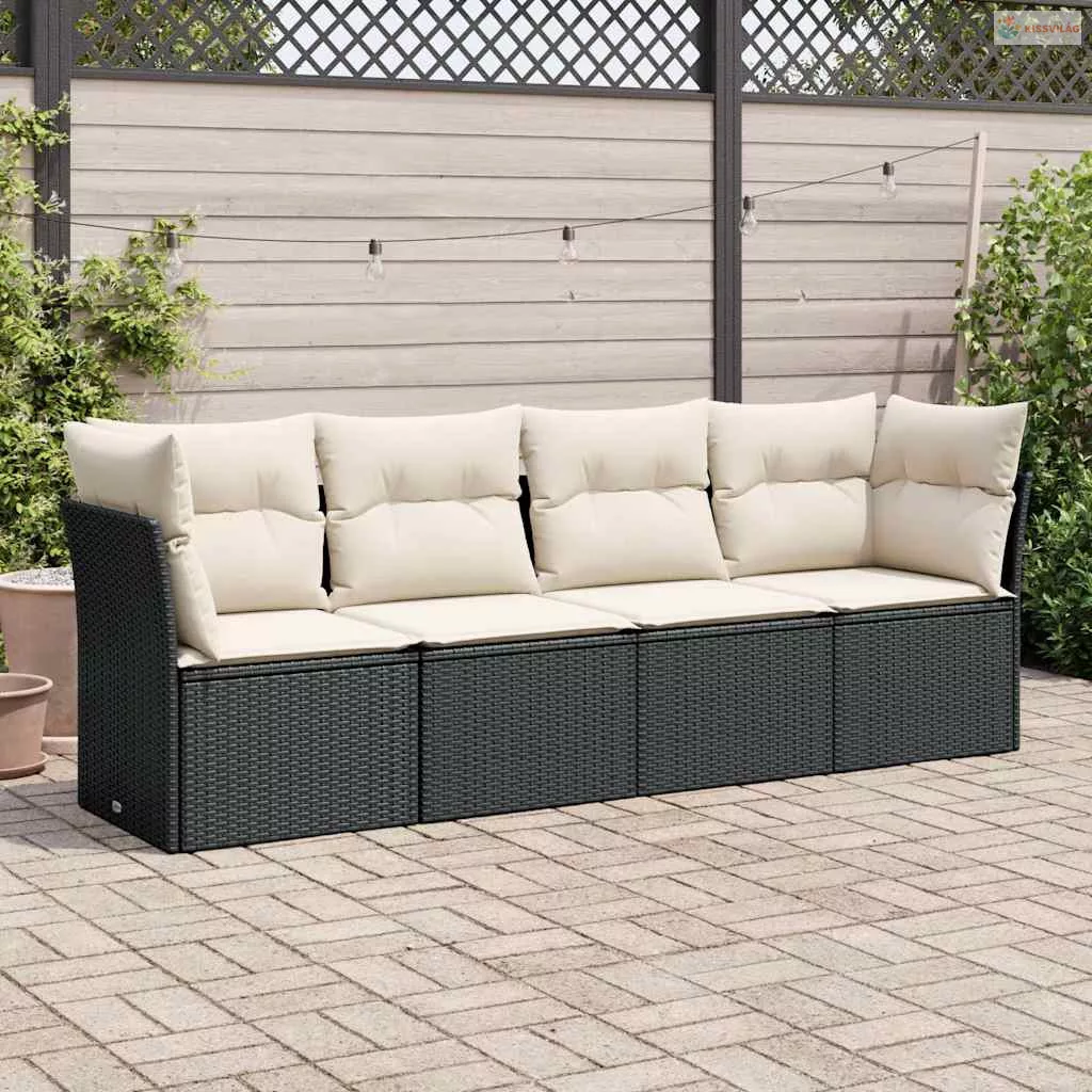 4 részes fekete polyrattan kerti ülőgarnitúra párnákkal