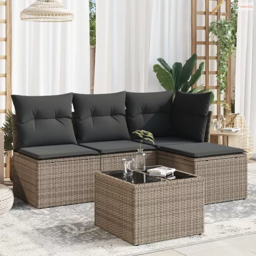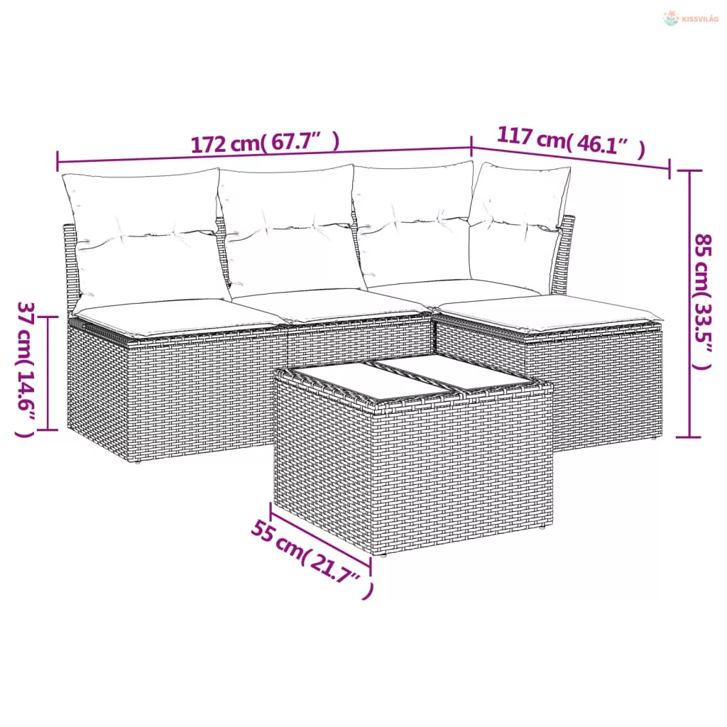 5 részes szürke polyrattan kerti ülőgarnitúra párnákkal