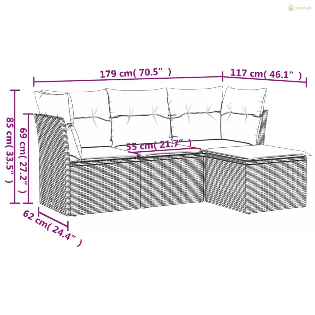 4 részes barna polyrattan kerti ülőgarnitúra párnákkal
