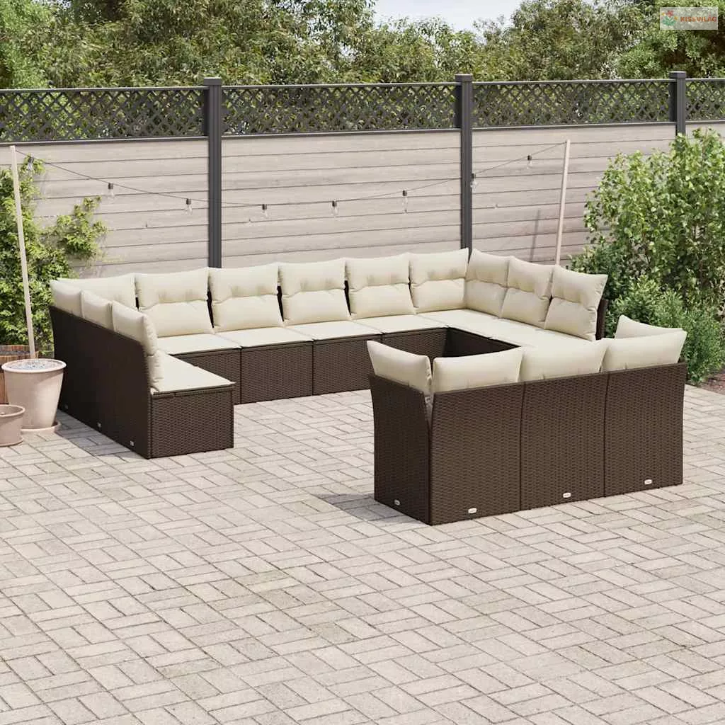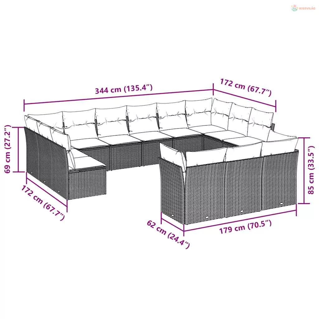 13 részes barna polyrattan kerti ülőgarnitúra párnákkal