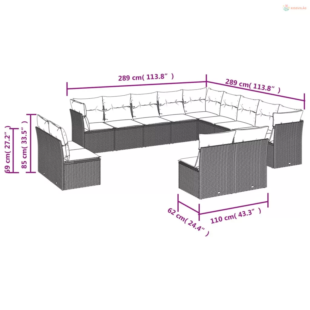 13 részes barna polyrattan kerti ülőgarnitúra párnákkal
