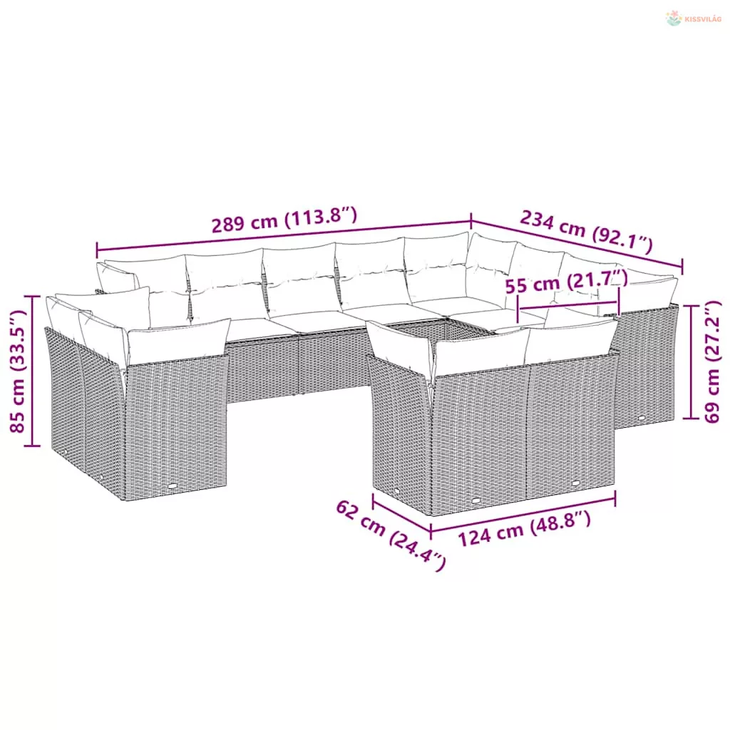 12 részes világosszürke polyrattan kerti ülőgarnitúra párnával