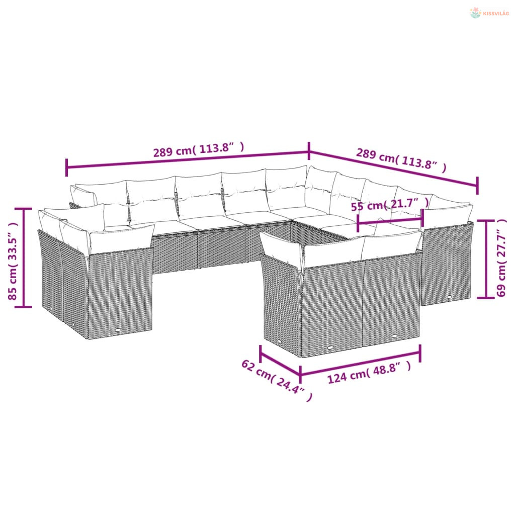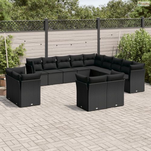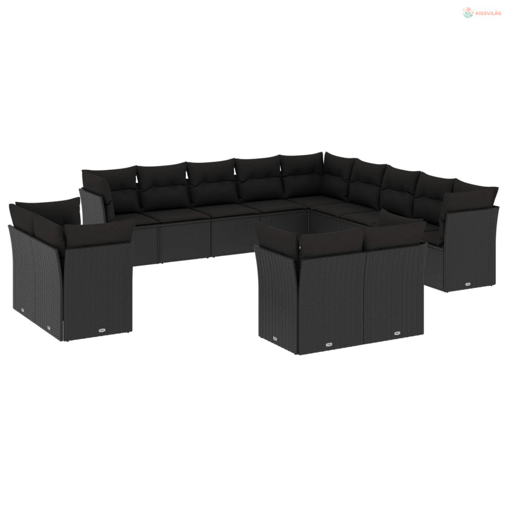 13 részes fekete polyrattan kerti ülőgarnitúra párnákkal