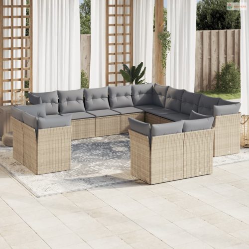 13 részes bézs polyrattan kerti ülőgarnitúra párnákkal